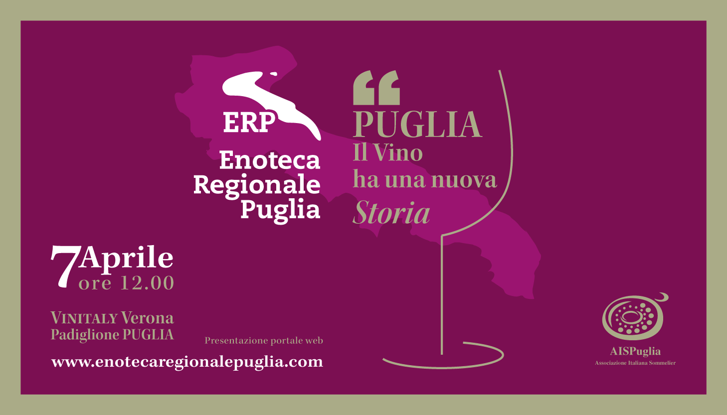 Si terrà il prossimo 7 aprile dalle ore 12,00 presso il Vinitaly a Verona, la conferenza stampa di presentazione del portale web dell’associazione Enoteca Regionale Puglia, www.enotecaregionalepuglia.com un progetto in partnership con l’Associazione Italiana Sommelier che parla di Puglia si pone l’obiettivo di illustrare le caratteristiche ed i pregi dei prodotti enologici regionali, delle stesse aziende vitivinicole, gastronomie, enoteche, ristoranti o strutture ricettive nonché di qualificare e valorizzare la cultura dell’enogastronomia, del turismo e dell’agroalimentare. Interverranno il Presidente Ais Puglia Vito Sante Cecere, il Presidente Enoteca Regionale Puglia Rossana Novielli, il responsabile del progetto web Gianni De Gerolamo e il sindaco di Gioia del Colle Sergio Povia, che comunicherà un importante e futuro progetto di collaborazione con l’Ais e l’Erp.